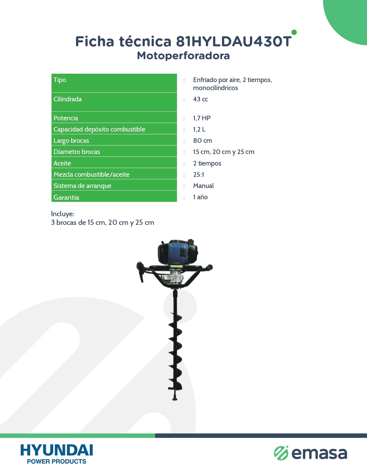 El ahoyador Hyundai 43cc es una herramienta versátil, potente y fácil de usar que ofrece un rendimiento excepcional en una variedad de aplicaciones de perforación. Con sus características de seguridad, durabilidad y comodidad, es una opción ideal para profesionales y aficionados que buscan una solución eficiente para sus proyectos de perforación.